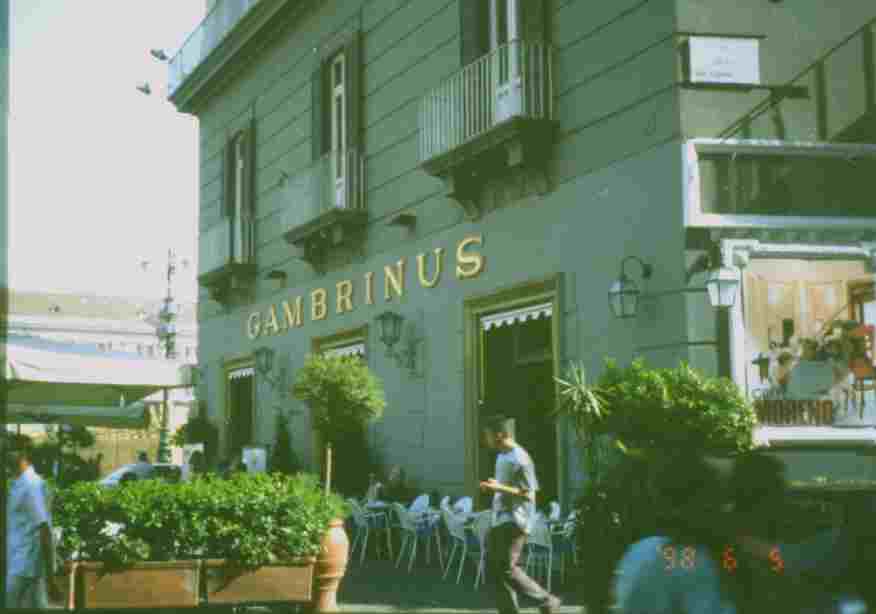 Das Cafe Gambrinus war um die Jahrhundertwende der lit. Mittelpunkt Neapels - eines der großen Kulturcafes Europas. Hier wettete Ferdinando Russo mit Gabrielle d'Annunzio: "Nur ein Neapolitaner kann Canzoni Napoletane schreiben"! Auf einem Marmortisch bewies d'Annunzio in 20 Minuten das Gegenteil. Die Canzone"A vucchella" entstand hier und Caruso machte es unsterblich.
